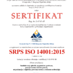 - Sistem upravljanja zaštitom životne sredine prema standardu SRPS ISO 14001:2015